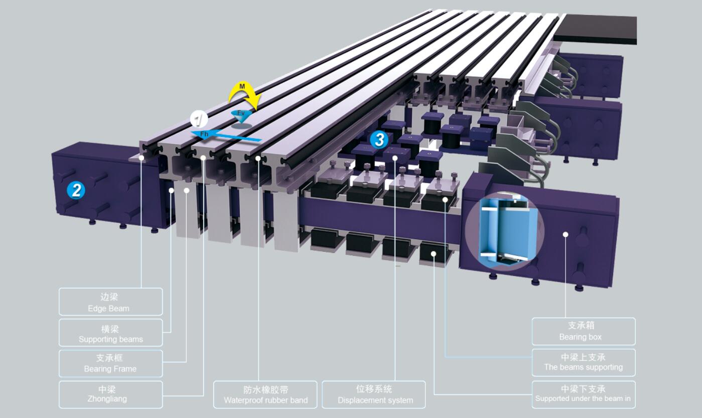 型鋼伸縮裝置是在總結(jié)國內(nèi)外各種大位移伸縮裝置特點(diǎn)的基礎(chǔ)上,針對重載高密度交通的狀況成功研發(fā)出的一種新型大位移伸縮裝置。